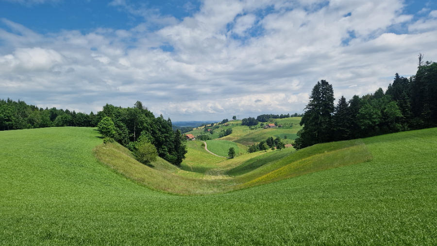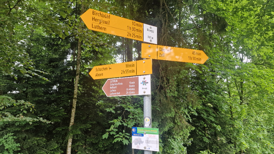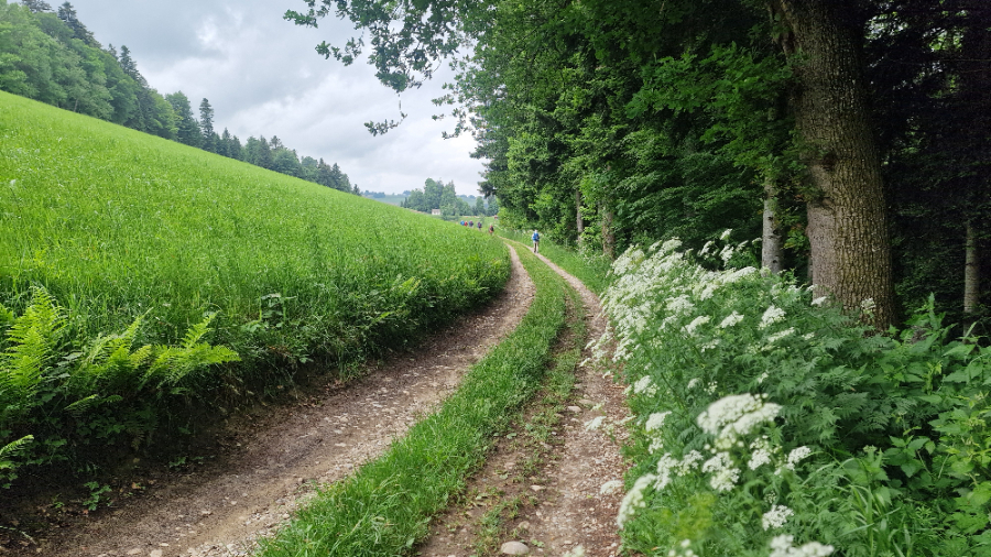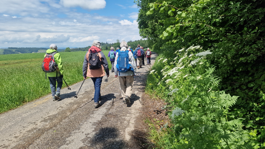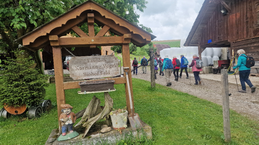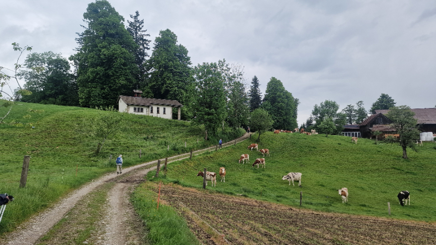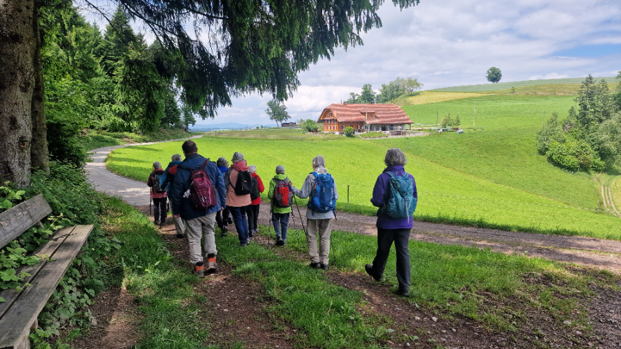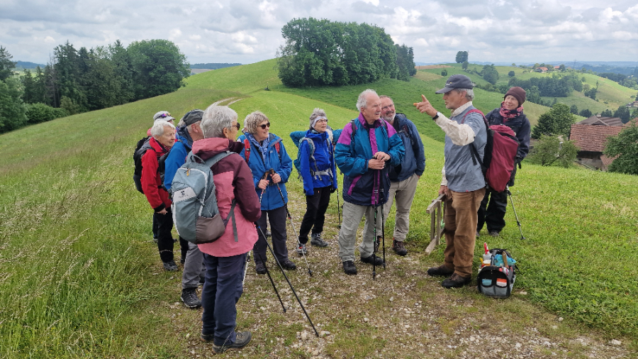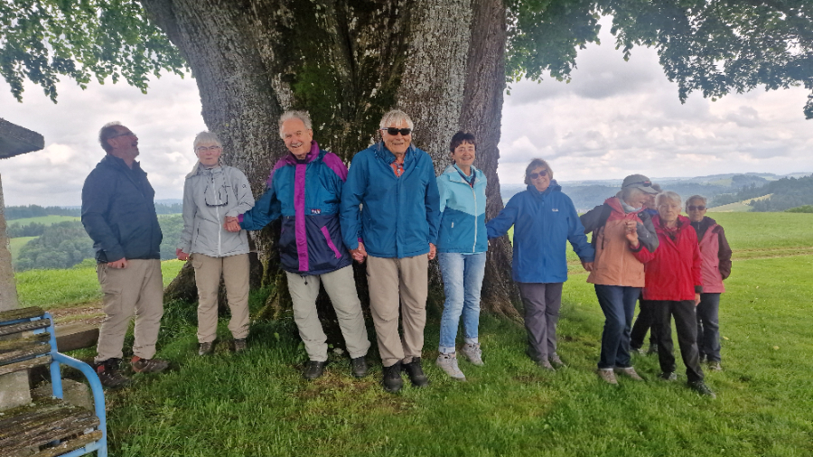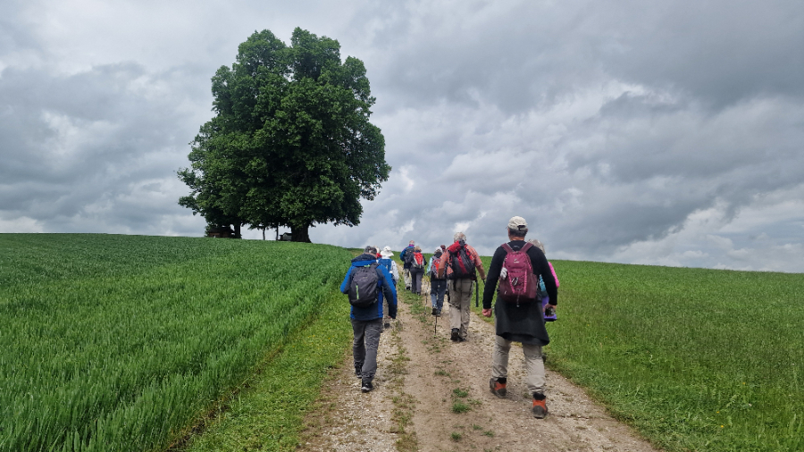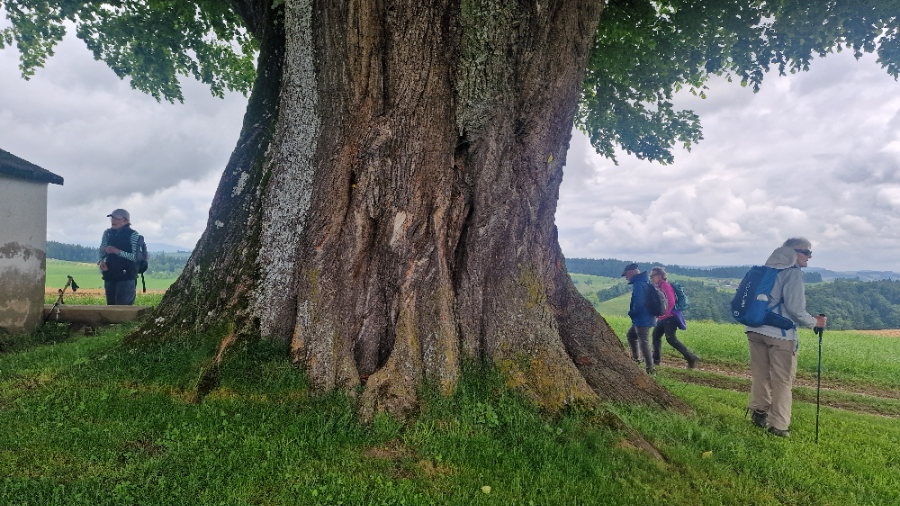 Nach dem Startkaffee in Willisau und der kurzen Fahrt mit dem Postauto nach Willisau Feld beginnt unsere Wanderung mit dem steilen Aufstieg zur Honig-Linde. Dieser mächtige Baum gehört zu den grössten Linden in der Schweiz. Er steht auf einem schönen Aussichtspunkt, von wo aus man ein herrliches Panorama bestaunen kann. Der Horizont ist leider wolkenverhangen, so dass die fernen Berge nicht zu sehen sind. Nach einer kurzen Trinkpause wandern wir weiter über Hinteregg zur Kapelle von Bösegg. In der ersten urkundlichen Erwähnung hiess der Ort noch Bisegg. Der Name wurde im Laufe der Zeit in Bösegg umgewandelt. Wir machen hier unsere Mittagsrast und Oscar erzählt uns die Legende, die zur Entstehung dieses Pilgerortes gehört. Sanft geht es nun bergab durch Feld und Wald. In der von der Milchwirtschaft geprägten Landschaft sieht man überall weidende Kühe. Es ist so still und friedlich hier, fernab vom Lärm der Stadt. Die Stille wird nur ein paarmal unterbrochen von Pilatus Portern, die am Himmel ihre Flugkünste üben. Schliesslich erreichen wir Zell, wo wir unseren Schlusstrunk geniessen. Wir danken Oscar Siegenthaler ganz herzlich für den schönen Tag und die interessanten Informationen über die Gegend. Er hat die Wanderung sehr umsichtig geplant und geleitet.