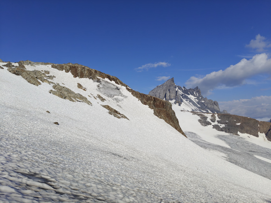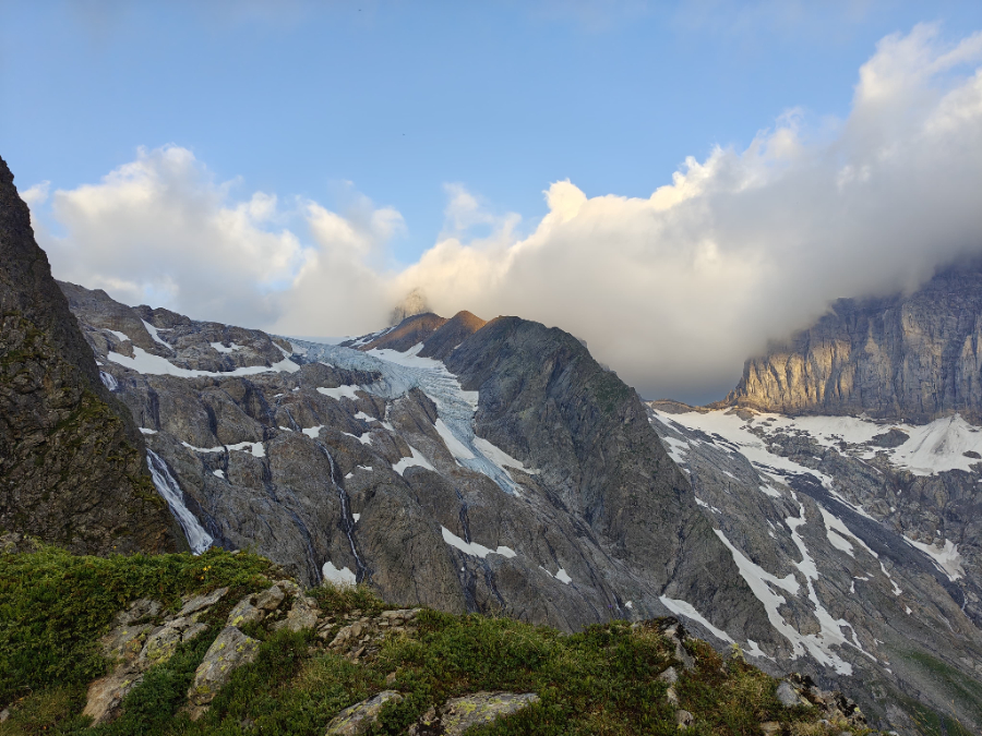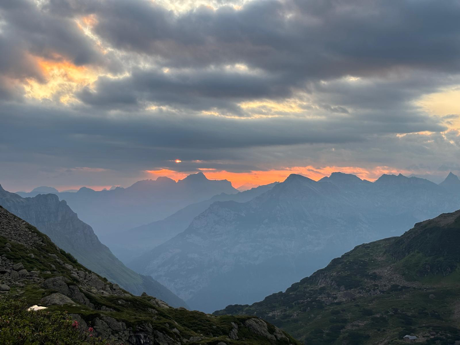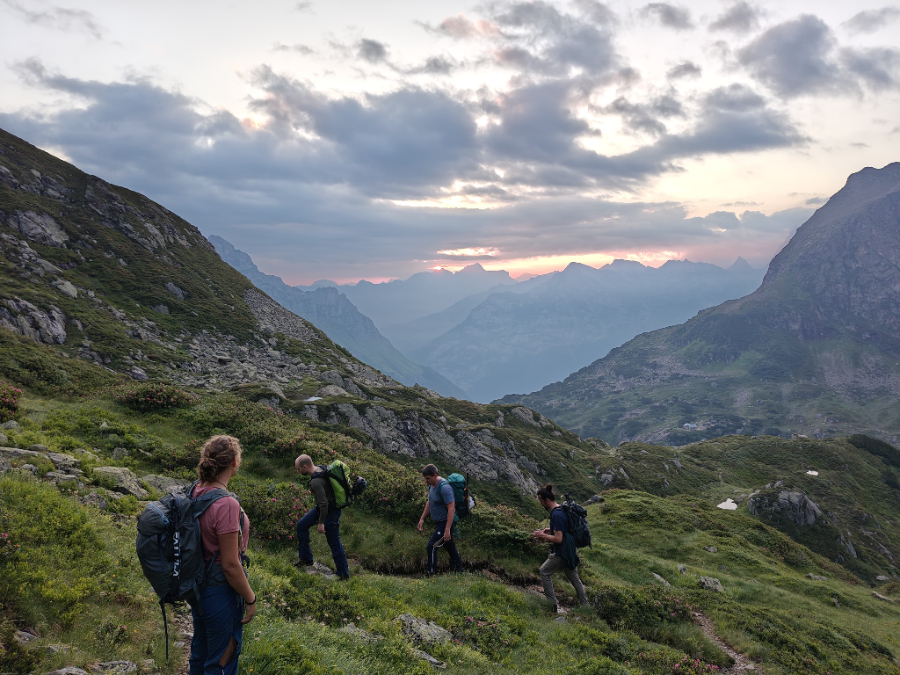 Am dritten Tag wagte sich ein Teil der Gruppe noch auf eine einfache Mehrseillängenroute in Hüttennähe, notgedrungen in Bergschuhen und mit etwas improvisiertem Material (wir waren materialtechnisch klar mehr auf Hochtouren als auf Mehrseilllängen ausgerichtet). Dank der Erfahrung der Kletter:innen gelang dies wie erwartet aber ohne jegliche Probleme. Der abschliessende Abstieg ins Tal rundete ein erlebnisreiches und lehrreiches Wochenende ab.