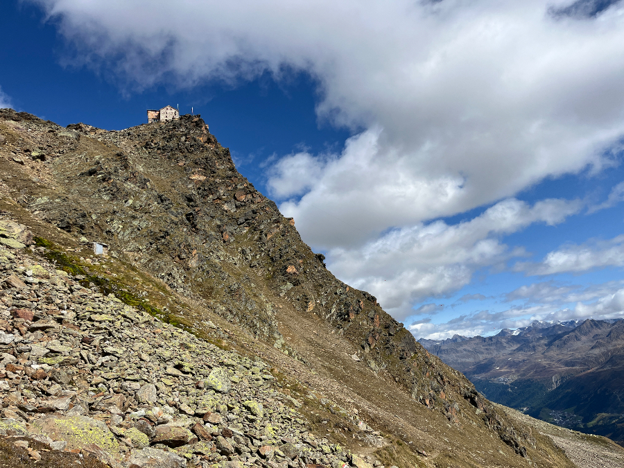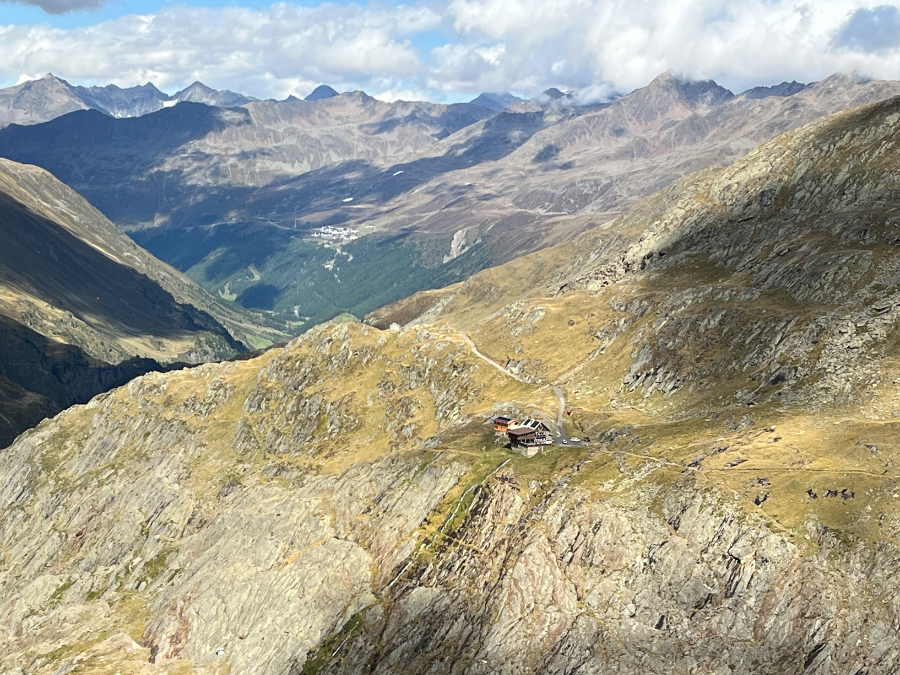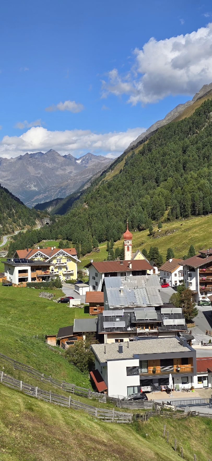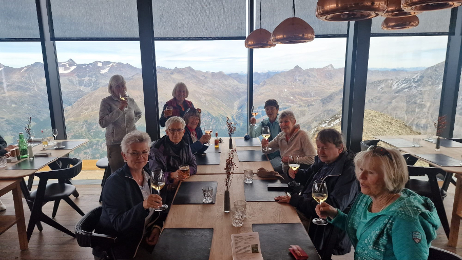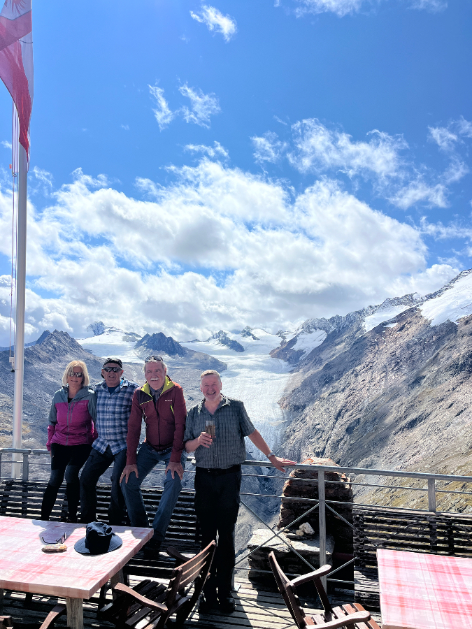 Nach der problemlosen Hinfahrt ging es nach der Ankunft im Hotel Hubertus auf eine Panorama-Wanderung oberhalb von Sölden. Dafür liessen wir uns vom modernen Shuttle-Lift, praktisch vor der Hoteltüre gelegen, gute 100 Meter in die Höhe fahren. Selbstverständlich hatten wir das bestmögliche Wetter bestellt, welches von den Ötztaler Wettergöttern auch prompt geliefert wurde. Was für ein toller Einstieg! Wir genossen die wunderbare Aussicht und gewannen einen ersten Eindruck über das schöne Tal und die umliegenden Berge, welche hier nicht «Horn», sondern «Kogel» heissen.