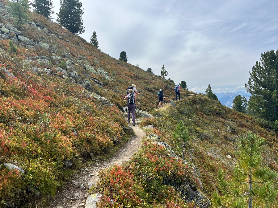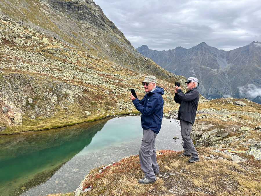 Am Sonntag ging es dann richtig los. Die einen zog es ins Venter Tal, die anderen auf die Kleblealm oder den Söldenkogel, die stille Seite des Tals. Wie immer stand ein mehr oder weniger strenges und äusserst vielfältiges Wanderprogramm zur Verfügung. In den ersten Tagen umfasste dies u.a. den Seeber- und den Peerlersee, den Wetterkreuzkogel und den Schmugglerweg. Der Zuspruch war gross. Alle wollten vom prächtigen Herbstwetter profitieren.