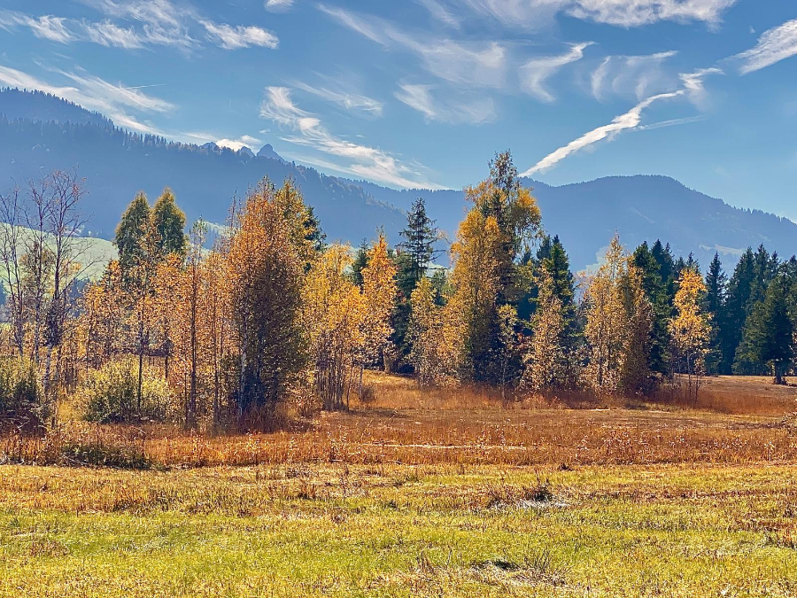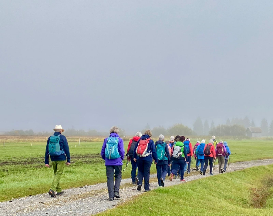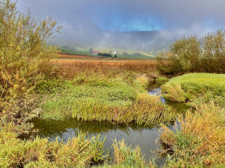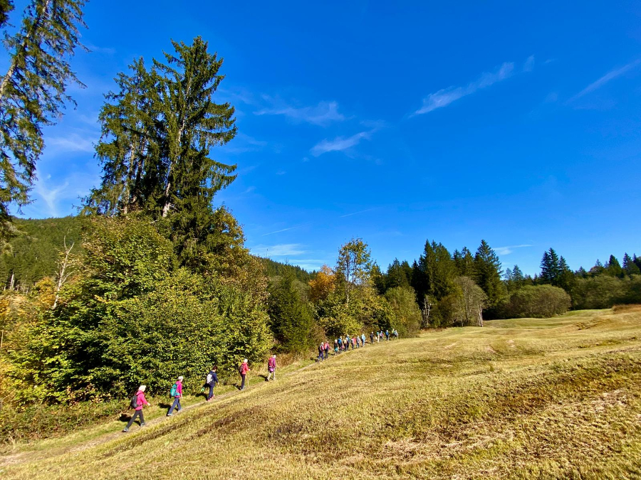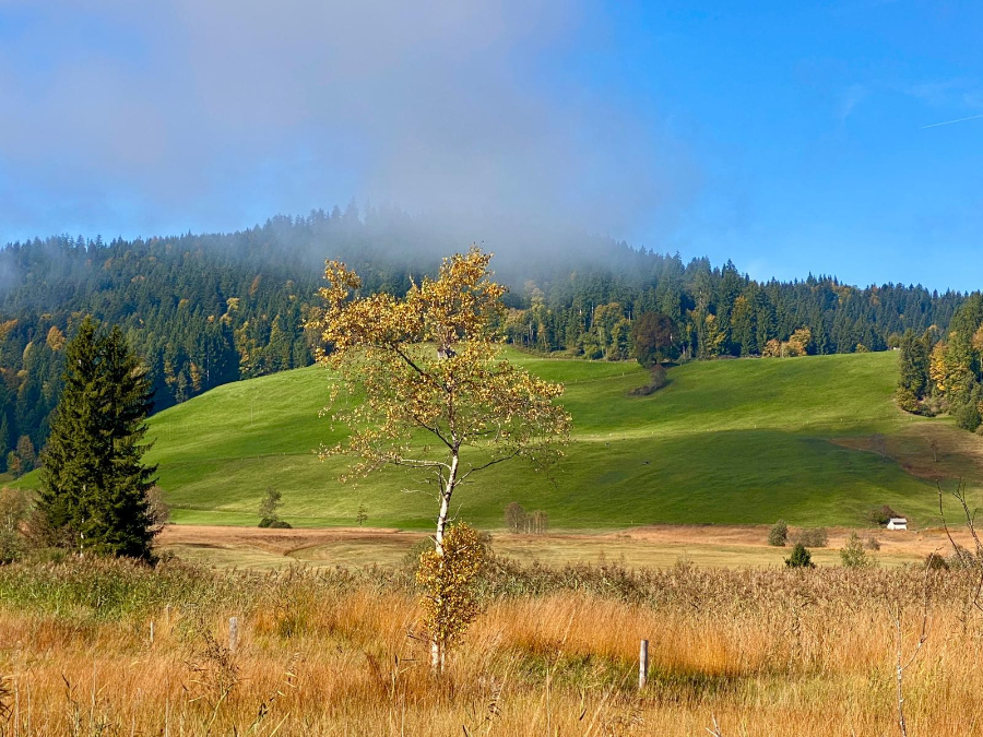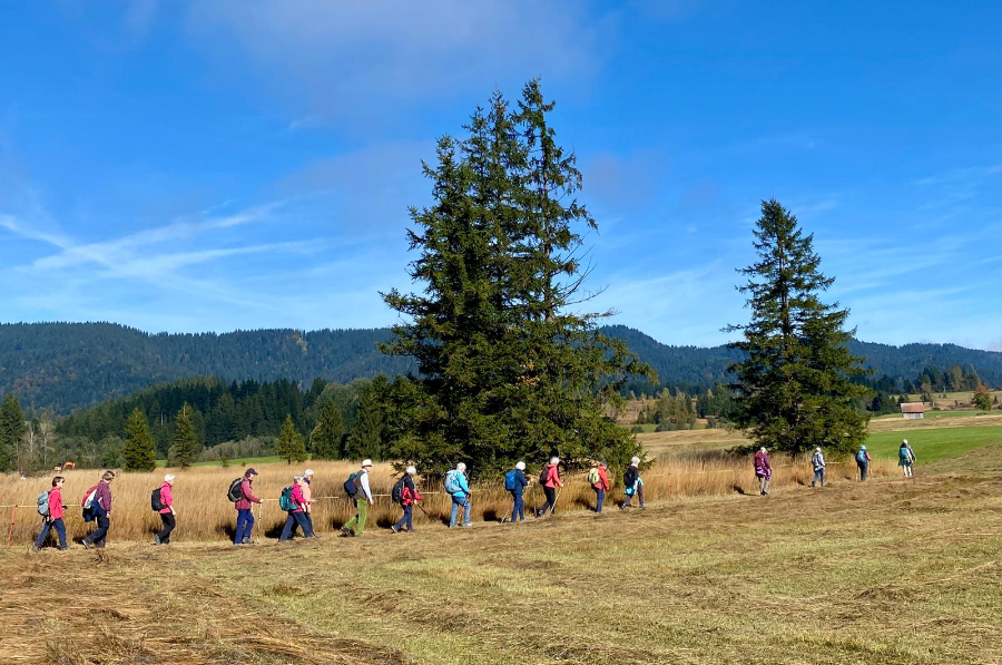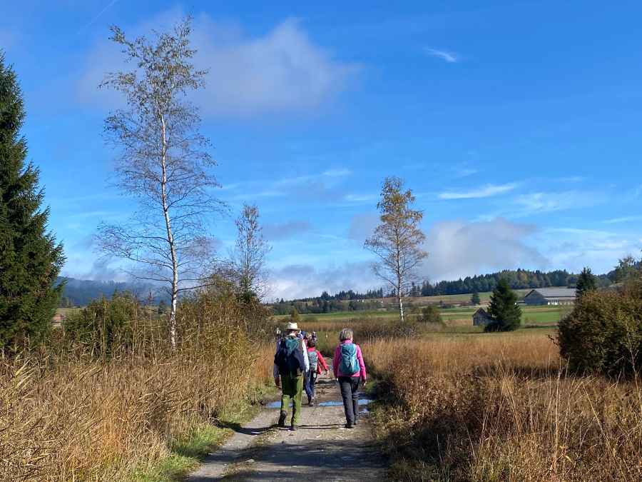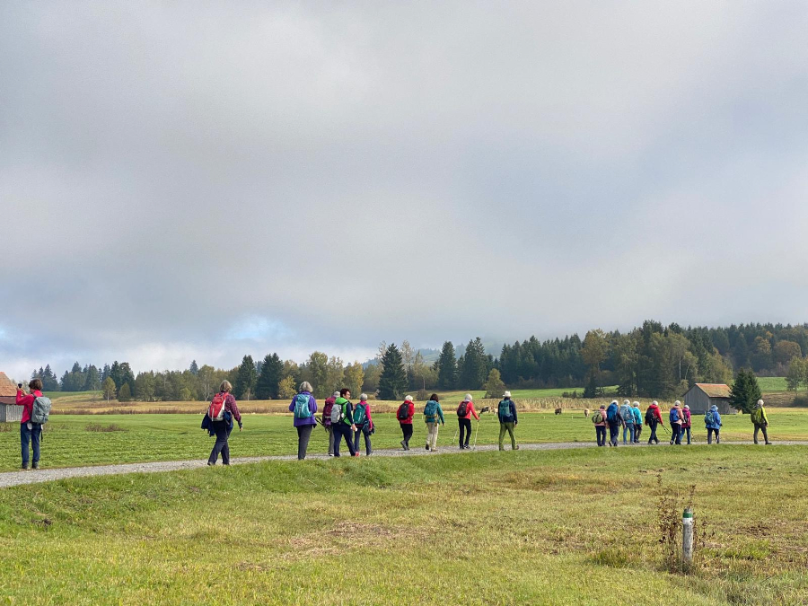 Wenn 1987 die sogenannte Rothenthurminitiative vom Stimmvolk abgelehnt worden wäre, würden wir an diesem schönen Herbsttag nicht durch das Hochmoor von Rothenthurm wandern. Es wäre ein Waffenplatz für die Schweizer Armee entstanden und das Hochmoor für alle Zeiten zerstört worden. Heute dürfen wir uns an der Farbenpracht und an der mystischen Stimmung im Moor erfreuen. Nach dem Startkaffee in Rothenthurm wandern wir los. Bald schon lösen sich die Nebel auf und die Sonne lässt die Farben noch mehr leuchten. Zügig kommen wir voran und treffen unterwegs immer wieder auf das Flüsschen Biber, welches nach Bibersteg in ein tiefes Tobel verschwindet. Nach einer kurzen Mittagsrast beim Moorgebiet Hinterwijer führt der Weg im Wald steil bergab zum Wolfschachen. Viel Wurzelwerk erfordert unsere ganze Aufmerksamkeit. Es folgen noch weitere Abstiege bis wir beim Moor Allmig wieder auf der gleichen Höhe wie die Biber sind, die nun auf unserem Weg bis nach Biberbrugg immer in unserer Nähe ist. Im Hotel Post Biberbrugg geniessen wir unseren wohlverdienten Schlusstrunk und für die Heimreise kaufen wir Magenbrot und Biberfladen draussen beim Händler ein. In einem wunderschönen Gebiet durften wir eine abwechslungsreiche und interessante Wanderung machen. Wir danken Jürg Anliker ganz herzlich dafür.