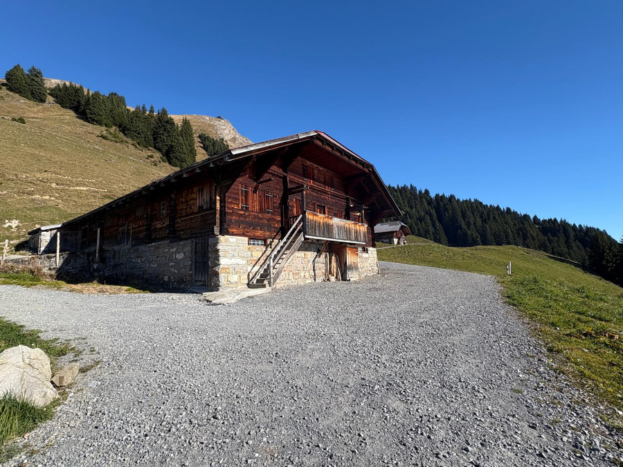 Wiesen bis zur Alp Oberniesen, wo wir uns eine kurze Trinkpause gönnen.