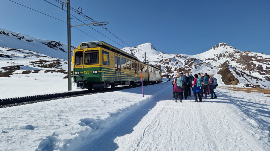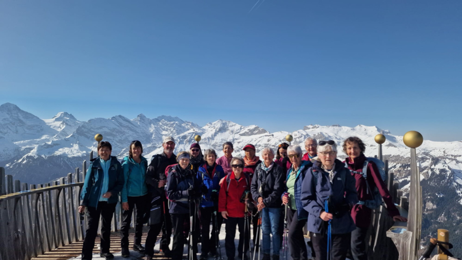 Beim vierten Anlauf (nach Alternativprogrammen im 2023 und 2024 aufgrund des gesperrten Winterwanderweges und einem ersten Versuch in grösstenteils nebligem Wetter im 2025) präsentierte sich uns dieses Jahr das herrliche Panorama des Winterwanderweges Männlichen - Kleine Scheidegg in fast makelloser Märzsonne – einzig der Saharastaub trübte die Sicht ein bisschen. Daher wollte sich auch niemand die Sicht vom Männlichen-Gipfel nehmen lassen. Alle stiegen freiwillig direkt nach der Fahrt mit der Luftseilbahn und vor dem Startkaffee die dafür erforderlichen 124 Höhenmeter hinauf. Mir schien, dass es niemand bereute...