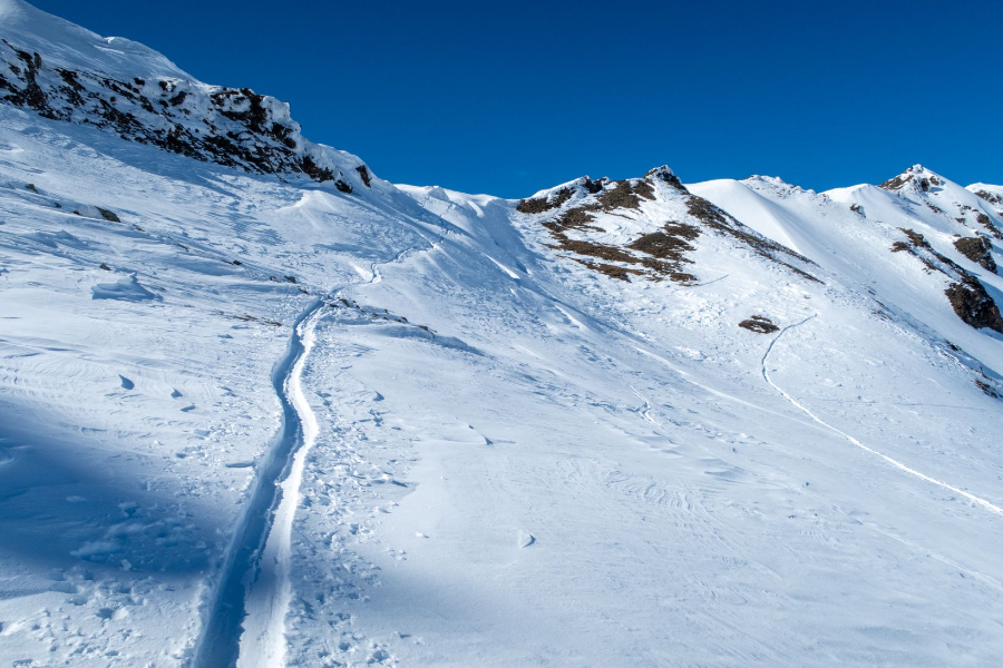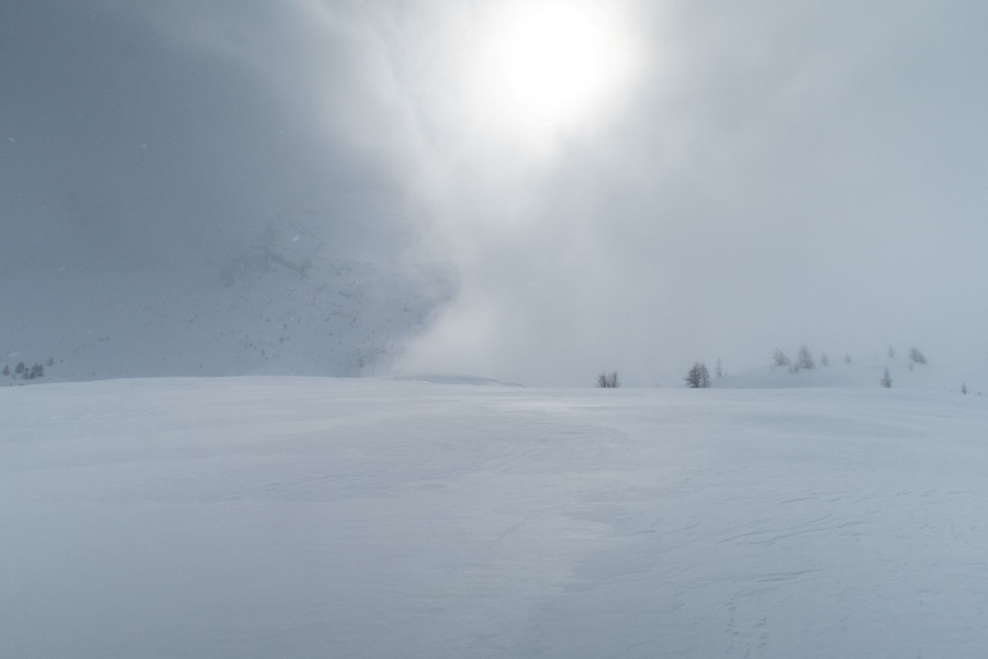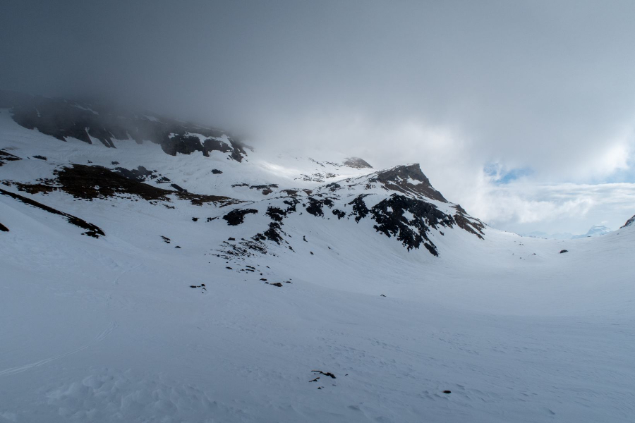 Für den Samstag war mit Stefan, Christian und Beat das Wasenhorn geplant. Um 5 Uhr Morgens ging es vom Bielti los, vorbei am Monte Leone und zum Hübschhornstein. Die steile Traverse wurde in Richtung Ost-Nordosten bis ans Ende des Chaltwassertälli weitergezogen. Auf 2780 Metern über Meer eröffnete sich uns der Blick in Richtung Monte-Leone-Hütte und auf den geplanten Wasenhorn West-Südwest-Grat. Zumindest theoretisch: Der Grat war komplett von Wolken verhangen, die immer weiter herunterzudrücken schienen. Also fassten wir den Entschluss umzudrehen und erfreuten uns an Bruchharsch und dem einen oder anderen Sturz in den weichen Schnee darunter. Hinter der Traverse fanden wir noch ein Bisschen guten Schnee, der immerhin ein paar schöne Schwünge erlaubte. Nach einem Kaffeestopp im Monte Leone wurden wir zurück im Bielti nicht nur mit einem Apéroplättli sondern zusätzlich mit Glühwein und Fondue verwöhnt.