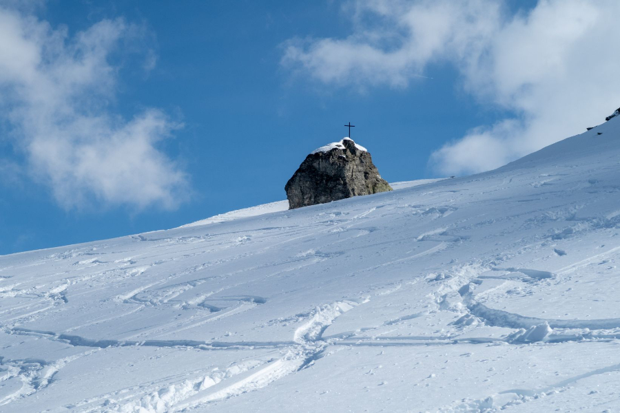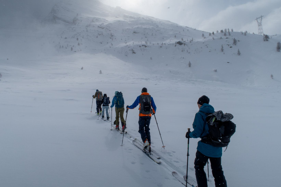 Die Wetterprognose für Sonntag war nicht vielversprechend. Also starteten wir gemütlich in Richtung Hübschhornstein. Der Aufstieg war sehr variabel, meist irgendetwas zwischen Wind, Schneetreiben und schlechter Sicht am einen Ende des Spektrums oder einigen wenigen Sonnenstrahlen am Anderen. Während die Gruppe Pasal bis zum Stein aufstieg fellten Meret, Valentin und ich bereits etwas früher ab und genossen die im Vergleich zu gestern deutlich besseren Abfahrtsbedingungen. Zwar bei vorwiegend schlechter Sicht, allerdings mit etwas frischem Pulverschnee. Damit konnten wir ein ereignisreiches und wunderschönes Tourenwochenende abschliessen.