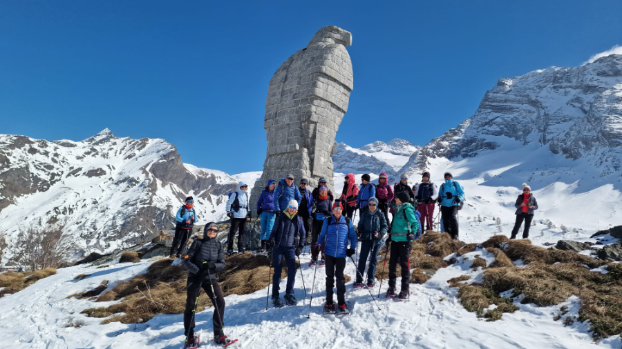 Trotz verspäteter Ankunft des Zuges aus Bern brachten uns die Busbetriebe fast fahrplangerecht zum Ausgangspunkt der heutigen Wanderung auf dem Simplonpass. Im Hotel Monte Leone stärkten wir uns, wie üblich, vor dem Einstieg in die Wanderung mit Kaffee und Gipfeli. Die Wandergesellschaft zeigte sich bei bester Laune, was ja bei diesem prächtigen Wetter eine Selbstverständlichkeit ist. Unter der kompetenten Leitung von Marianne Sarbach, tatkräftig unterstützt von ihrem Ehemann Adolf, starteten wir auf dem Rundweg Richtung Staldhorn. Auch hier herrschen nicht gerade üppige, sondern für die Region eher karge Schneeverhältnisse. Vormittags sind diese jedoch ideal zum Schneeschuhwandern. In den noch fast frostigen Nächten erhärtet sich nämlich der tagsüber sulzig gewordene Schnee, so dass das Wandern ein Leichtes ist. Bald erreichte die illustre Schar den höchsten Punkt der heutigen Wanderung, ziemlich genau unter dem Tochuhoru. Die Sonne wärmte schon mit beachtlicher Kraft und liess uns die dem Simplongebiet eigenen Windverhältnisse vergessen. Nach kurzer Trinkpause wanderten wir Richtung Hopschelsee und erreichten bald nachher einen windgeschützten Ort für die Mittagsrast. Nachher führte uns Marianne zum Steinadler, dem Symbol der Wachsamkeit und Wahrzeichen des Simplonpasses. Auf dem Sockel findet sich die Inschrift: «In der Freiheit der Berge steht es. Ein wichtiges Mal aus hartem Granit. Ein Gedenken treuer Pflichterfüllung. Ein dauerndes Mahnen, willig und wach zu sein für unsere Freiheit». Kurze Zeit später erreichten wir das Tagesziel beim Sommersitz von Hans und Berti Michlig (Hans ist ein Bruder von Rudi Michlig). Hier wurden wir mit warmem Wein, Hobelkäse, Weisswein, Teewein und selbstgebackenen Köstlichkeiten grosszügig verwöhnt. Viel zu früh mussten wir die gemütliche Stimmung verlassen um uns rechtzeitig bei der Busstation einzufinden. Schliesslich wurde der Fahrplan schon am Vormittag ganz gehörig zu unseren Gunsten strapaziert. Inspiriert von einem tollen Wandererlebnis in prächtiger Bergwelt traten wir die Heimreise an. Herzlichen Dank Marianne und Adolf für die motivierende Art der Wanderleitung sowie Hans und Rudi Michlig und Hanspeter Arnold für den grosszügigen Empfang. Res Bolliger