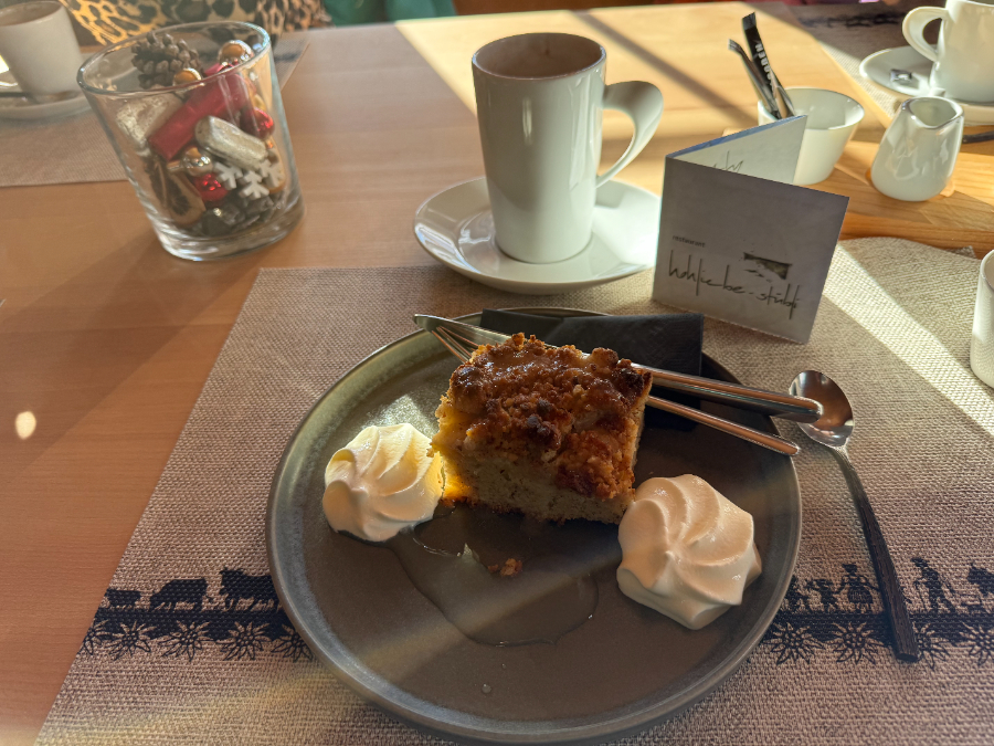 Zu Beginn ging es recht steil hoch. Beim Hohliebi-Stübli genossen wir ein feines Stuck Kuchen mit Kaffee. Dann ging es gemächlich weiter hinauf, bis auf 1'630 Hm. Kurvenreich absteigend kamen wir bei einem Staffel an, wo wir Mittagshalt machten und die wärmenden Sonnenstrahlen genossen.